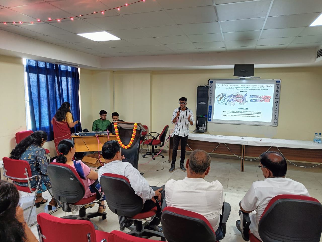 The Journalism and Mass Communication department of Trinity Institute of Innovations In Professional Studies organized an Inter Department event ‘Prabha Manch’ on the 14th and 15th of October 2022. The idea for the event was "To celebrate and add to the Grace and Grandeur of this festive season”.