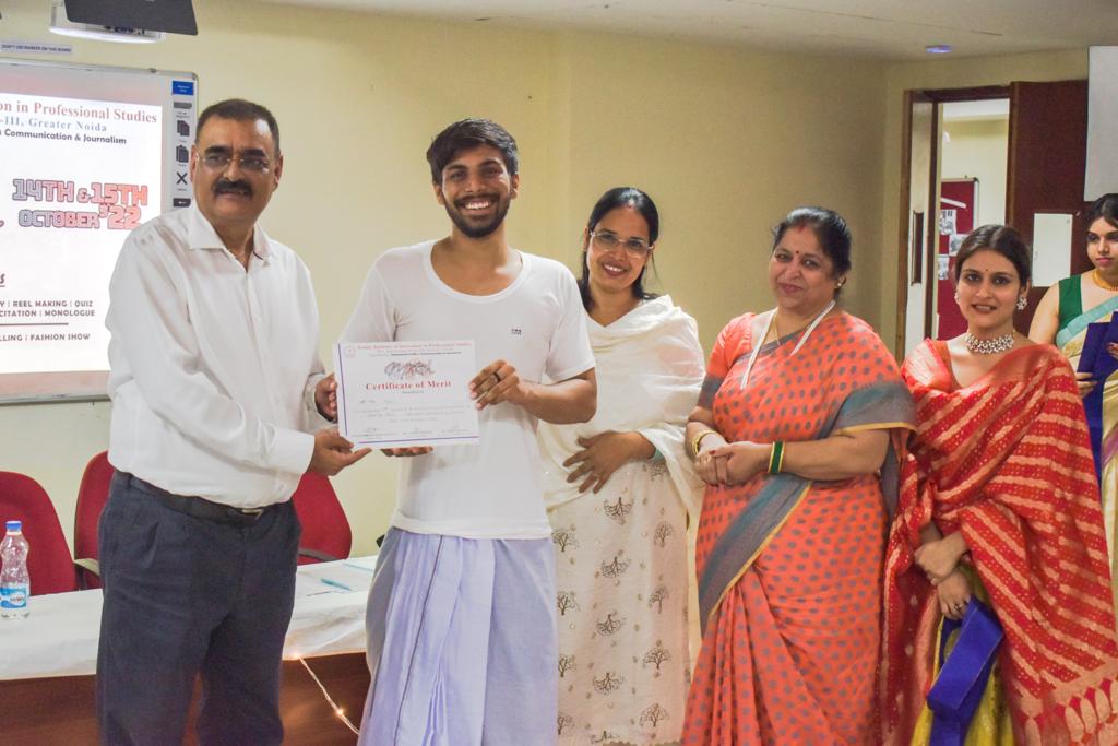 The event was formulated by Ms. Anisha Thakur and Mr. Mohit Mudgal (faculty) & student coordinators of the BAJMC department. The two-day event included a plethora of competitions such as Debate, Reel making, Stand up Comedy, Storytelling, Quiz, Face painting, Photography, Poetry recitation, and a Fashion show. At the end , winners of the event were given prize by the Director Dr R K Tewatia and the faculty members.